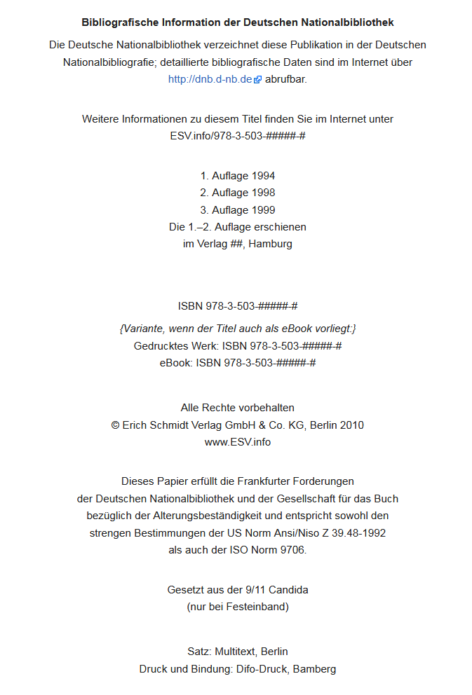 | Bibliografische Information der Deutschen Nationalbibliothek | esv.produkt/produkt.meta/info-dnb |